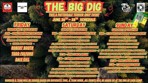The East Coasts biggest working Patterdale Terrier Event of 2026! Three days of great fun with working terriers. Come watch the worlds elite earth terriers do what they dog best. Also come join us for conformation shows judges by some of the breeds most popular names Robert Booth Toddd Fulford and Dale Gill